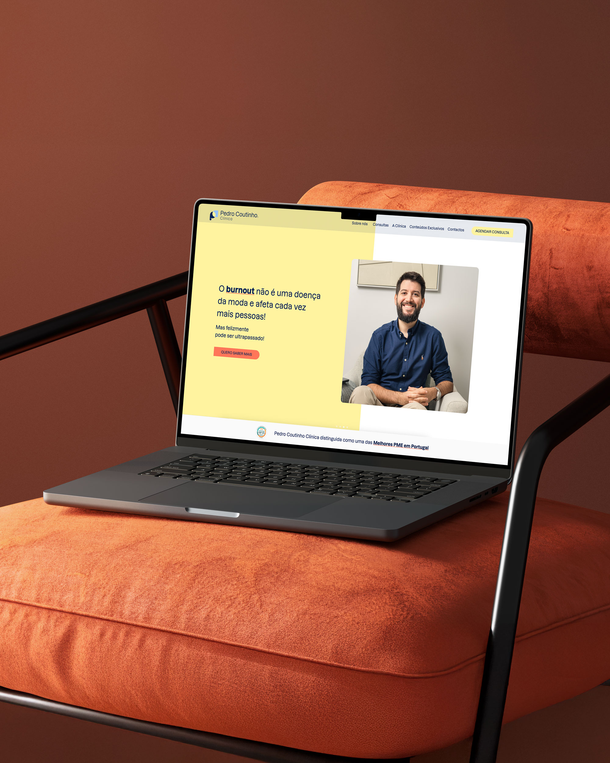 Para além da identidade visual, desenhámos e implementámos o website da Pedro Coutinho Clínica. O website funciona como uma extensão natural da marca, com uma estrutura clara e uma experiência digital alinhada com os objetivos da clínica.